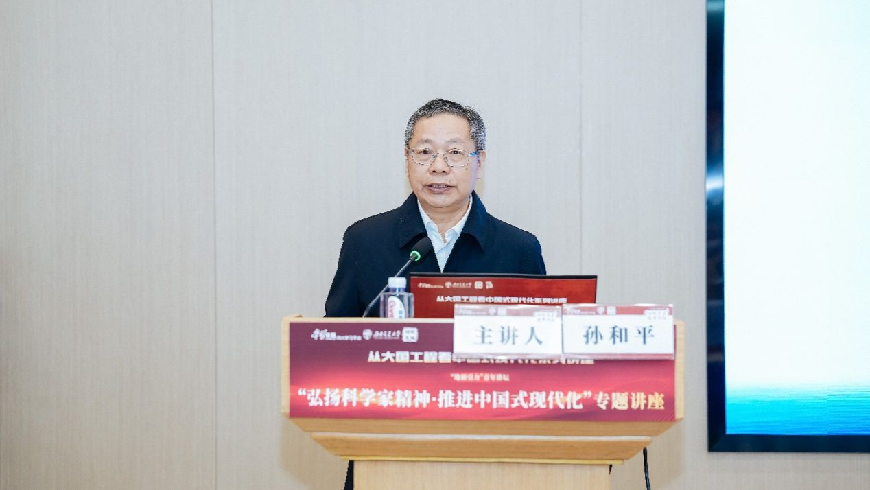 邀请,中国科学院院士孙和平做客“明诚讲堂”——“从大国工程看中国式现代化”系列讲座“地新引力”青年讲坛,为现场师生带来了题为“传承方俊院士科学家精神,推动我国测绘科技事业的创新发展”的精彩思政报告。中科院武汉文献情报中心纪委书记任晓华、地球科学与工程学院200余名师生现场聆听了报告。报告会由地学学院院长刘国祥主持。
