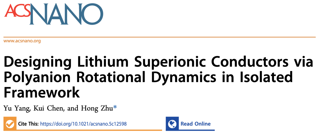 大规模电化学储能创新团队最新研究成果“Designing Lithium Superionic Conductors via Polyanion Rotational Dynamics in Isolated Frameworks”第一完成单位是麻豆传媒